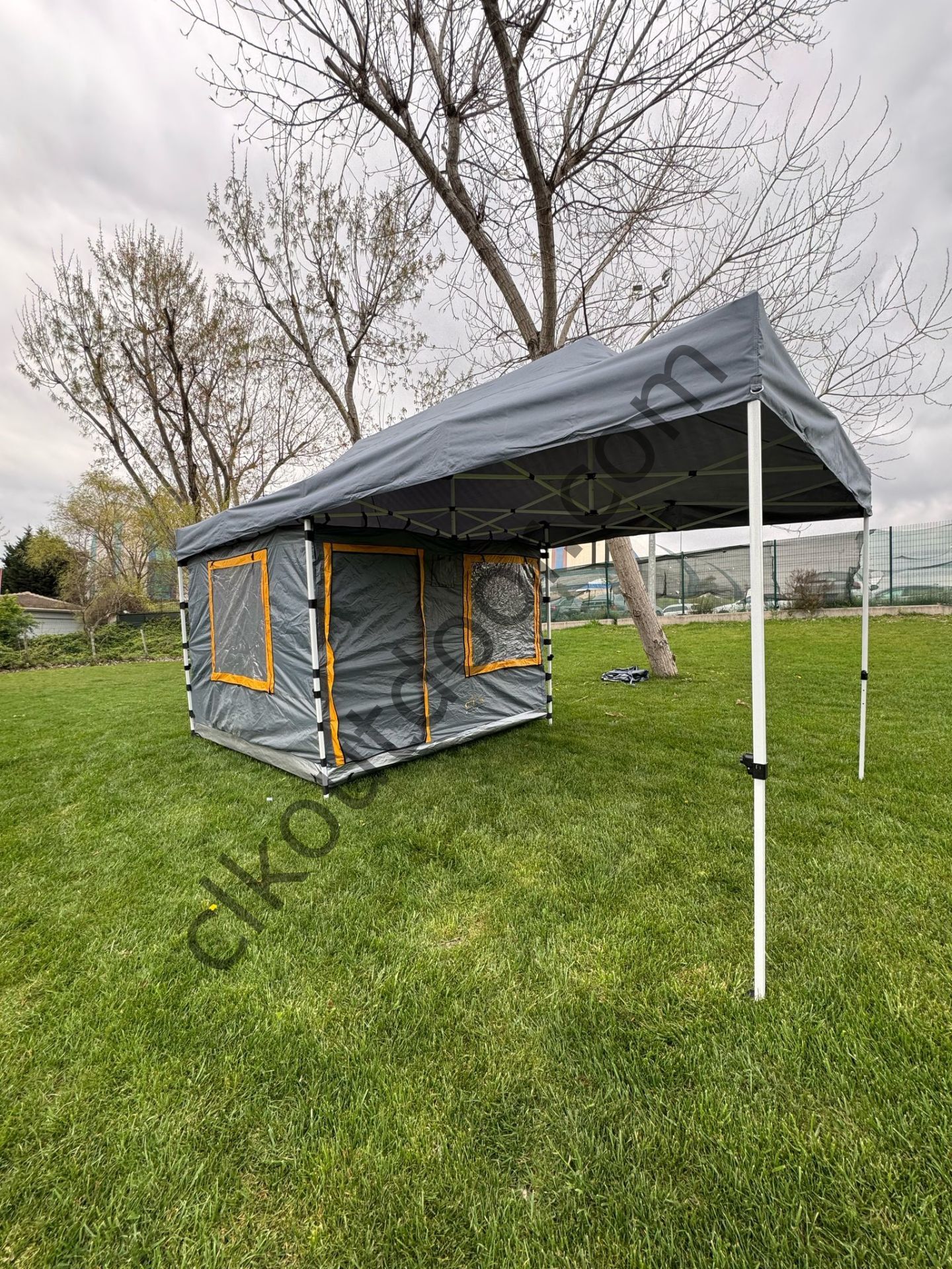 CLK 3x6 Yeni Sistem 4 Pencere 2 Kapılı Verendalı 40 mm Profil Katlanır Portatif Gazebo Kamp Çadır Gri